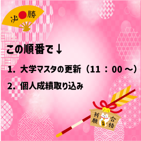 インターネットにアクセスできないパソコンでバンザイシステムのプログラム最新化や大学マスタを更新する場合には、オフラインでご利用の場合をご覧ください。